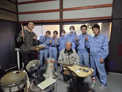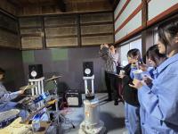 作業終了後、温かいココアを飲みながら、音楽を流したり、楽器を演奏してスタジオの音響を確認しました。