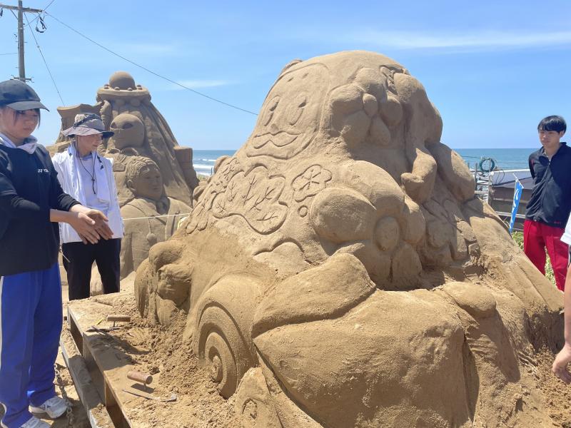 そして、私たちが制作した砂像の中には、石川県ゆかりのものが多く入っています。1月1日に地震で被災した方々が少しでも元気になれるよう、「がんばれ石川県!」という思いを込めて制作しました。部員一同の思いが伝われば幸いです。