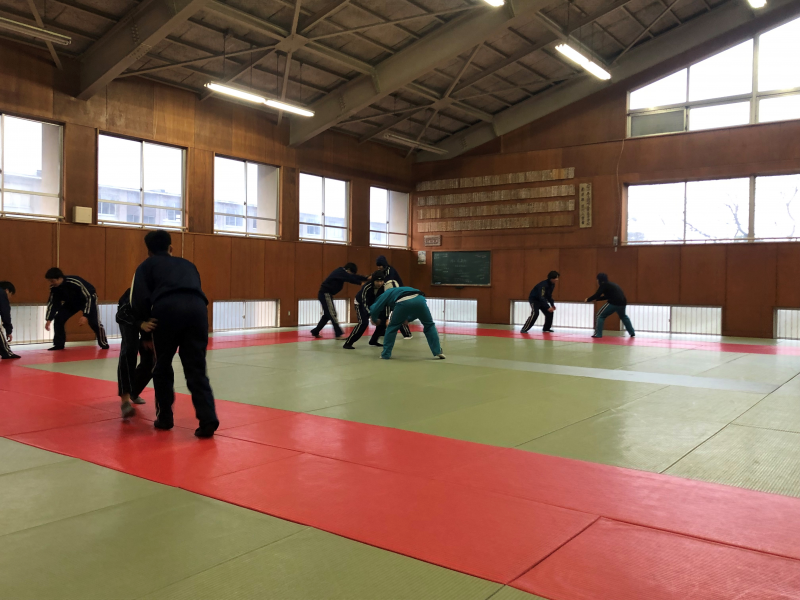 悪天によってグランドがなかなか使えないことが多い冬季は、柔道場でマット運動を行ったり、体育館で基礎的なボール練習、トレーニング場での基礎筋力を高める練習を行っています。