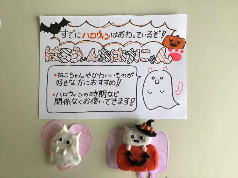 ひなたぼっこという太陽の光で乾燥させると陶器風(セラミック)の質感になる粘土を用いて、それぞれのテーマに合わせたブローチを制作しました。