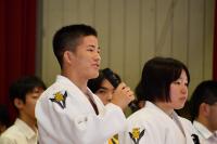 全国大会に出場するコンピュータ部、剣道部、柔道部、ヨット部の選手たち及びフロアボールの国際大会に出場する選手の壮行式が行われました。