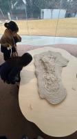 ひなたぼっこという太陽の光で乾燥させると陶器風(セラミック)の質感になる粘土を用いて、それぞれのテーマに合わせたブローチを制作しました。