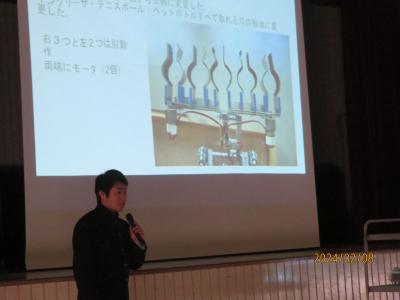 震災の影響で1月は3年生がなかなか集まることができず、1月の後半1週間の突貫工事で本日の発表会までたどり着くことが出来ました。今年1年間の工業高校らしい探求学習の成果を発表していましたが、やはり準備の期間が短く、班員の全てが集まれなかったことから、内容については満足がいかないかもしれません。