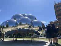 ハクイ村田製作所で蓄電池ラッピングの完成お披露目会があり、建設・デザイン科デザインコースの3年生が出席しました。
