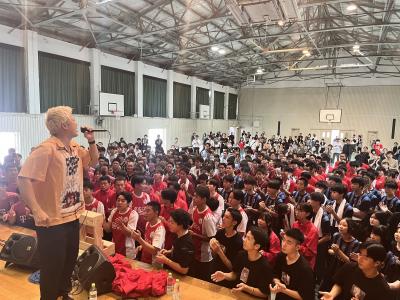 石川県高等学校総合体育大会ラグビーフットボール競技に出場する選手の壮行式が行われました。助っ人が3名入ってくれたので、単独チームとして参加します。練習の成果が出せるように、精一杯頑張ってください!応援しています!!