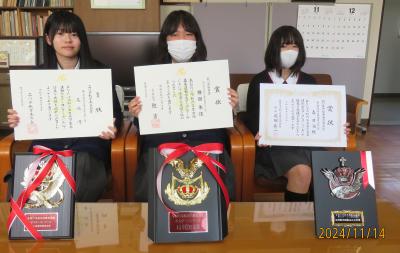本校の生徒の多岐にわたる活動に対し賞状等をいただくことは、校長として嬉しいことですね(^_^)