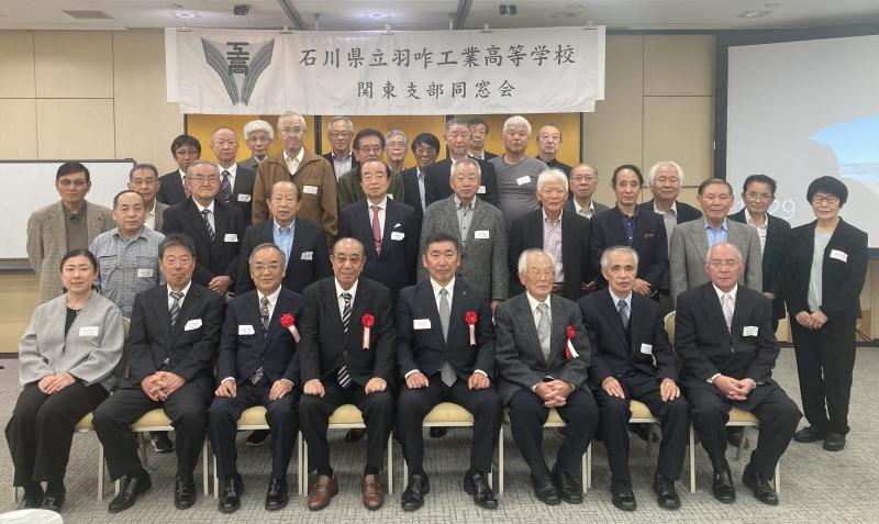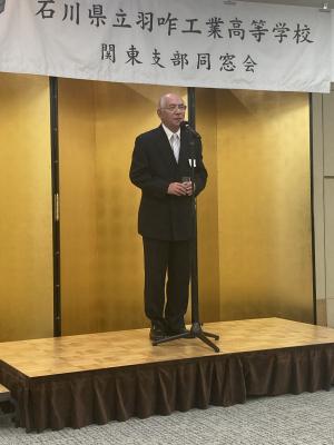乾杯は関東総支部土田清作さん(1回機械)によっておこなわれ、非常に和やかな懇親会がスタートしました。懇親会では来賓の越野兵司(旧職員3回建築科担任)さんが、当時の学校の様子や生徒の様子など羽咋工業高校の楽しい思い出話をしていただきました。その後は多くの方から近況報告があり、非常に楽しく、思い出話に花が咲く会となりました。