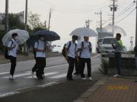 本校生徒、職員、PTA役員の方々が、学校周辺や校門前等で生徒の登校指導、挨拶を行いました。朝の早い時間帯に、また小雨の降る中、ご協力いただいたPTA役員の方々、本当にありがとうございました。