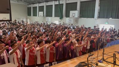 石川県高等学校総合体育大会ラグビーフットボール競技に出場する選手の壮行式が行われました。助っ人が3名入ってくれたので、単独チームとして参加します。練習の成果が出せるように、精一杯頑張ってください!応援しています!!