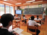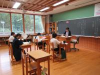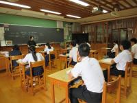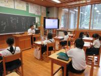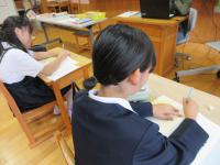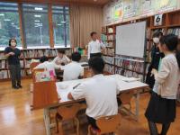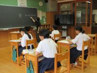 2学期中間テストも終わり、テスト返しが始まっています。間違えた問題の攻略のため、友達と教え合ったり、先生の解説を真剣に聞いたりしています。また、金曜日に予定されている「でぐの舞体験」の事前学習として、学校図書館司書の読み聞かせによる学習も行いました。