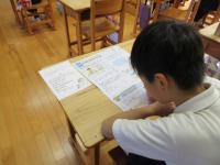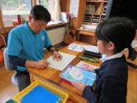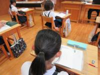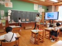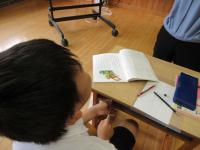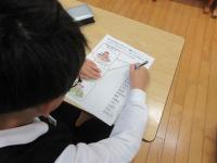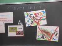 1年 国語「しらせたいな 見せたいな」 学校にいる生き物や学校で見つけたものを家の人に知らせるため、文や絵をかいています。