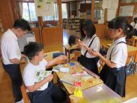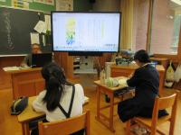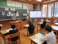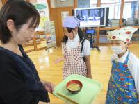 5年 家庭科「みそ汁づくり」 日ごろ授業でお世話になっている先生に食べてもらいました。
