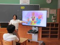 今日の給食は、本校に来てくれているニュージーランド出身のALTにちなんだ献立です。ALTがニュージーランドの食文化について映像を見せながら、お話とともにクイズを出題してくれています。
