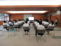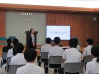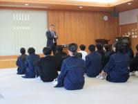 本日は先生による朝講話の日です。勉強の仕方について、自身の体験を交えながら話される内容に、生徒たちは真剣に耳を傾けています。自分の勉強の仕方を振り返る良い機会となりました。