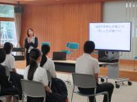 中学1年生は、実際に石川県内であったSNSでのトラブルを事例として、どんなことがいけないことなのか、何に気をつけないといけないかについて自分ごととして考え、意見を伝え合っています。