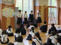「おはなしの会」 今年度さいごの読み聞かせでした。お世話になったボランティアの方々へ、子どもたちがお礼のメッセージを贈りました。