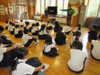 「おはなしの会」 朝読書の時間、ボランティアの方々による読み聞かせが行われました。