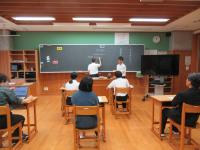 運営係会 小学校高学年と中学生が、運動会をスムーズに運営するため係会を開いて話し合っています。
