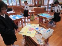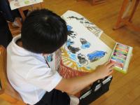 3・4年 図工「読書感想画」 色をぬり、最後の仕上げです。粘土で作った昆虫も完成しました。