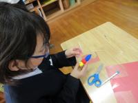 1・2年 生活科「あきランド」 1年生がマツボックリやドングリを使ったおもちゃを作りました。2年生を招待してみんなで楽しみました。