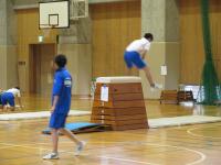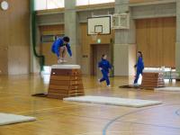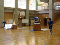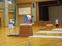 3年生 体育館で跳び箱の授業をしています。正しく跳べるように工夫しながら、段階を踏んで練習しています。
