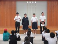 今日は小中学生が一堂に集う白嶺交流集会がありました。各種表彰や緑の羽根募金の報告、中学生の広報健康委員会によるレクリエーションを行いました。