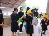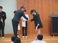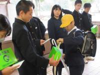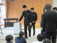 朝の合同朝礼にて、白山市防犯協会尾口支部よりいただきました防犯アラーム付きミニライトを生徒に配付しました。校長先生より、贈ってくださった方の思いとともに、自分自身を守ることの大切さ・地域を守ることへの期待のお話があり、生徒たちは真剣に聞いていました。