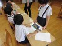 4年 理科「ヒトの体のつくりと運動」 写真を見ながら骨はどのようになっているのかを調べています。