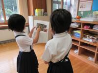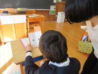 「おはなしプレゼント」 いつもの担任とはちがう先生の読み聞かせです。