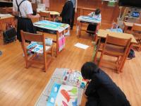 1・2年 生活科「わくわくおもちゃランド」 2年生がいろいろなおもちゃを作り、1年生を招待しました。楽しい工夫を凝らしたおもちゃがたくさんあります。