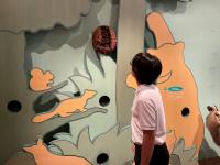 3年 図工「このカタチ へんしんすると」 表と裏で絵が変身するように形を工夫して作りました。