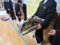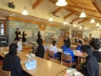 今日は、地元の鮎への関心を高めるジオ育・食育の一環として、地域の方から提供いただいた白山ひめ鮎を使った給食をいただきました。説明を聞きながら実際に食べてみて、地元の鮎について理解を深めています。