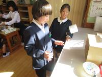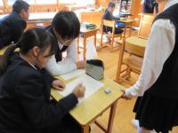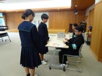 白山市の選挙出前講座があり、市の選挙管理委員会事務局の方から選挙のしくみや方法についてお話をいただきました。後半は、実際に模擬投票を行ってみました。