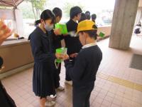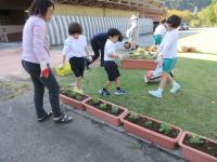 小学校5・6年生と中学生が各チームに分かれ、協力してプランターの片付けを行いました。手際の良い作業で予定よりも早く片付けられました。