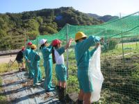 「畑の片付け」 5・6年生が学童農園の片付け作業を行いました。いろいろな作物を収穫した畑、ネットを外したり支柱やブロックを整えたり、みんな協力して頑張っていました。