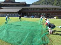 3・4年 白山ろくの4つの小学校の3・4年生が交流学習を行いました。学習発表のあと、ペタンクやドッジボールを楽しみました。