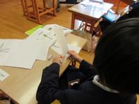 6年 学活 11月に縦割り班で行う「焼きいもパーティー」の打ち合わせをおこなっています。