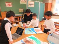 1年 国語「うみのかくれんぼ」 海の生き物の「かれんぼ」を各自紹介しています。