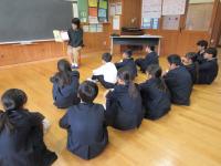 「おはなしの会」 朝読書の時間、ボランティアの方々による読み聞かせがありました。