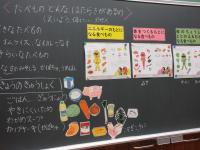 2年 学活「食べものにはどんなはたらきがあるの」 食べ物の働きについて学習しました。今日の給食の献立に使われている食材を、赤(体をつくるもとになる)・黄(エネルギーのもとになる)・緑(体の調子を整える)の3色に色分けをします。