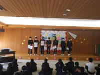 〈小学校〉「2月の白嶺っ子集会」 各委員会からのお知らせと、白山市読書感想画の表彰を行いました。