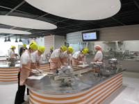 1年 生活科 「給食室のひみつ」大きな鍋やざる、木べらなどに興味津々。