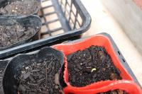 花壇の花も少しずつ生長しています。ヒマワリもたくさん芽を出しました。