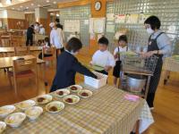 上手に準備して、みんなで食べる給食はとてもおいしいですね!