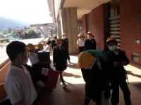 今日は今年度最初の避難訓練を実施しました。1階理科室から出火したことを想定し、全児童生徒が安全に素早く避難できるか確認しました。校内の防火シャッターも作動確認のためしっかり閉じます。