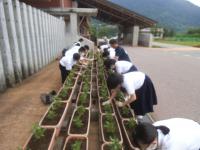 校舎前のお花の様子です。梅雨空の下どんどん成長しています。是非来校の際は様子をご覧ください。