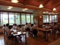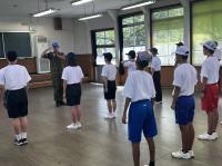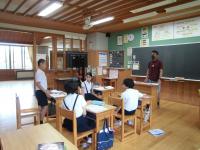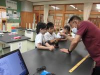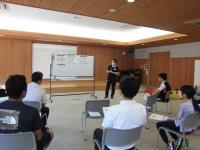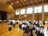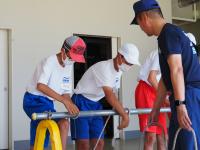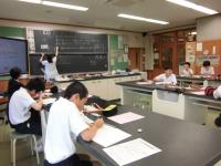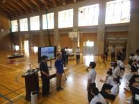 部活動の練習内容などは、先輩である中学生が説明をします。暑さにめげずにどの部活動も熱心に取り組んでいました。