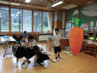 休み時間は中学生のお姉さんに小学生が遊んでもらっています。
