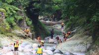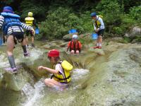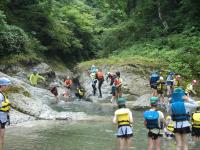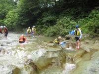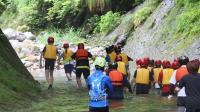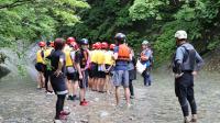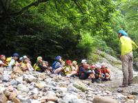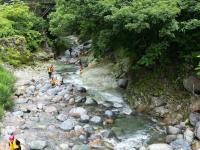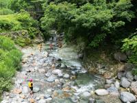 今日は夏のジオパーク研修のため、吉野谷地区の瀬波まで出かけました。瀬波川の沢登り体験です。ライフジャケットやヘルメットをしっかり着用し、安全・安心を第一に生徒みんなでゴール地点を目指しました。水はとても澄んでいて冷たかったですが、ゴール地点では達成感からみんなとてもいい笑顔でしたね!