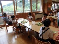 本校では、小中交流の一環として、ランチルームでの一斉給食を行っています。